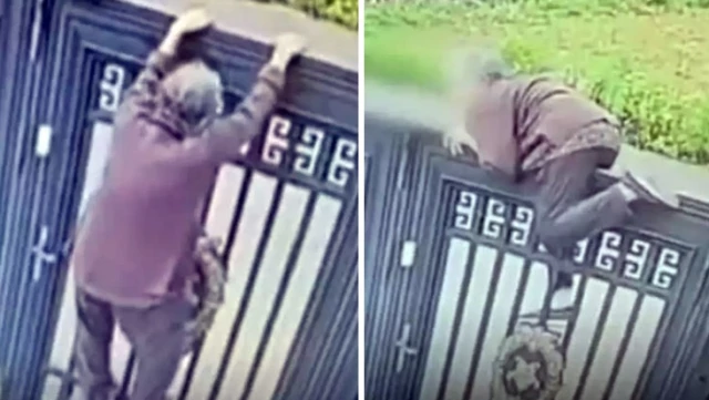 Se puede ver que la anciana escaló hábilmente la puerta de metal antes de saltar sobre ella y aterrizar sobre sus propios pies en el otro lado. Toda la huida se produjo en 24 segundos.