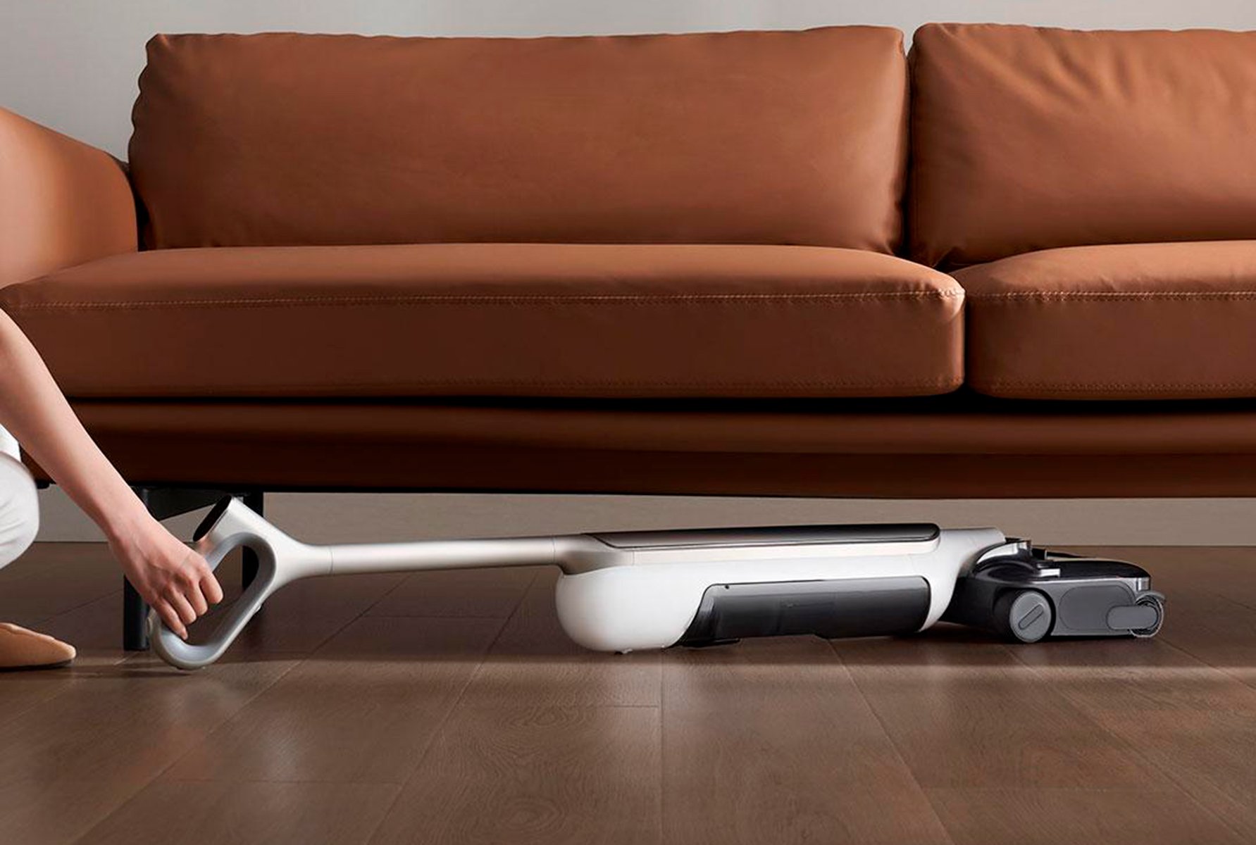 ¿Qué es una aspiradora/fregona? Muy sencillo: Xiaomi ha evolucionado las aspiradoras sin cable que llevamos años viendo en el mercado, añadiendo un sistema de depósitos, rodillos y aire caliente para que este aparato no solo recoja la suciedad seca del suelo: ahora también friega cuando lo pasas.