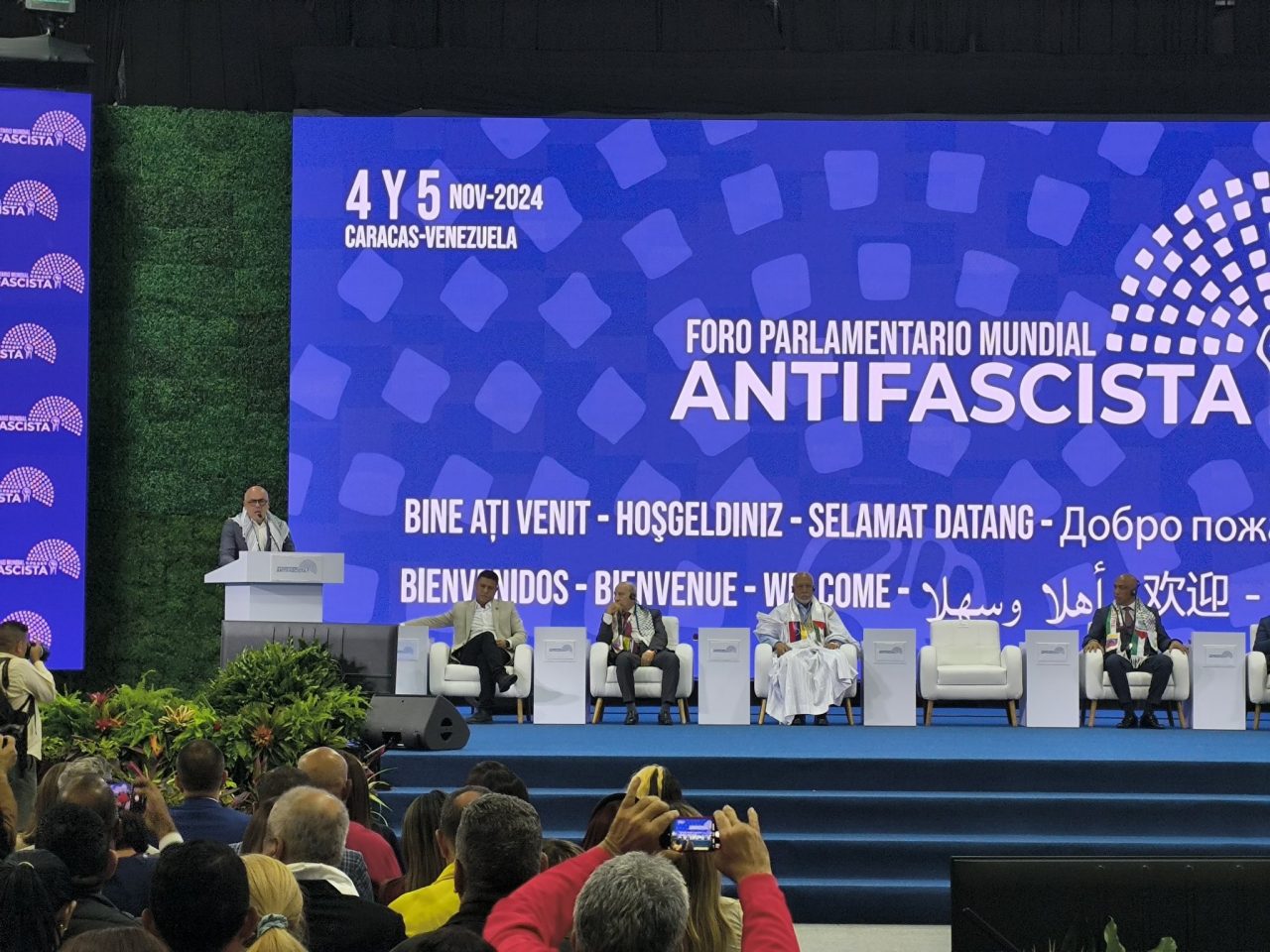 El presidente de la Asamblea Nacional, Jorge Rodríguez, dio la la bienvenida este lunes a los más de 300 parlamentarios de 70 países que participan este 4 y 5 de noviembre en el «Primer Foro Parlamentario Mundial Antifascista» en Caracas.